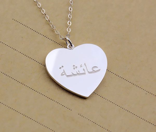 Personalised Arabic Engraved Name Heart Necklace Custom Silver Unique Islam Personalised Arabic Clothing Islamic Gifts Store Uk