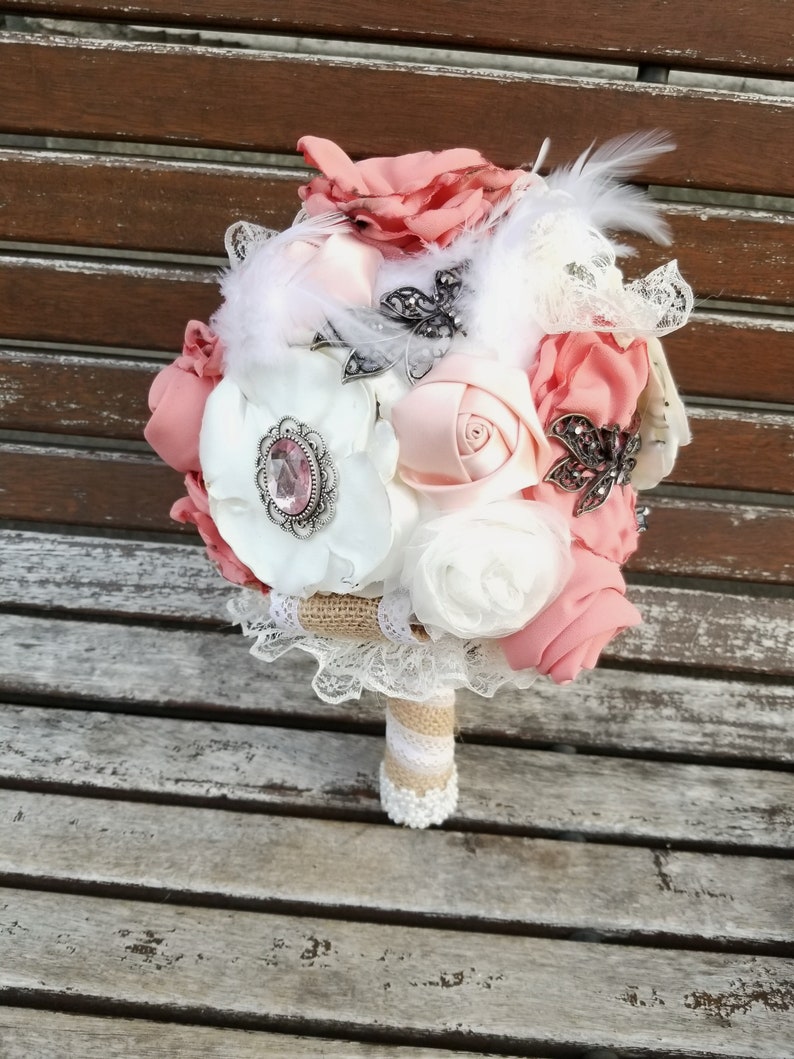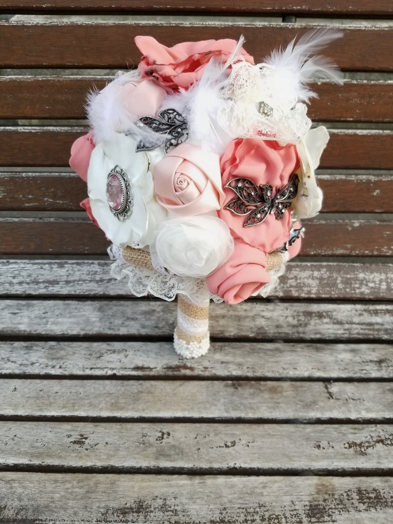 Brooch bouquets are a stunning and lasting alternative to a traditional wedding bouquet. At viva las vegas flowers, we use only the freshest flowers to make your special wedding day enchanting and memorable. Steve madden veil or hair accessories. Our las vegas bouquets can be custom made according to your event. Ivory and blush brooch bouquet, fabric bouquet, bridal bouquet, wedding bouquet, 50% deposit payment.